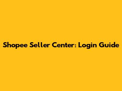 Shopee Seller Center: Login Guide