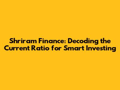 Shriram Finance: Decoding The Current Ratio For Smart Investing