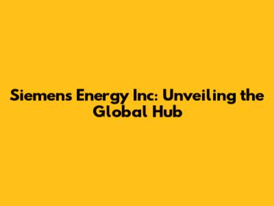 Siemens Energy Inc: Unveiling The Global Hub