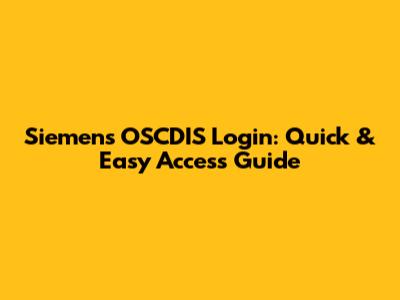 Siemens OSCDIS Login: Quick & Easy Access Guide