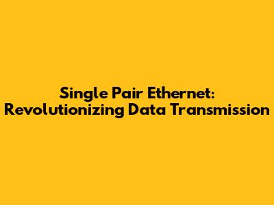 Single Pair Ethernet: Revolutionizing Data Transmission