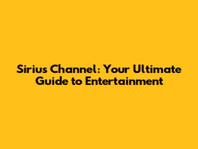 Sirius Channel: Your Ultimate Guide To Entertainment