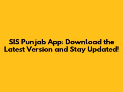 SIS Punjab App: Download The Latest Version Now!