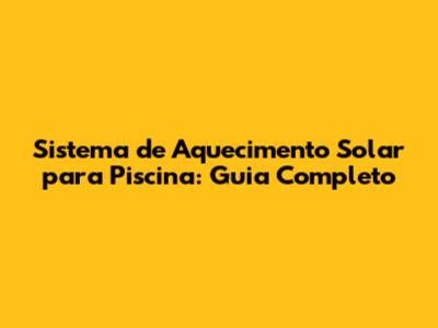 Sistema De Aquecimento Solar Para Piscina: Guia Completo