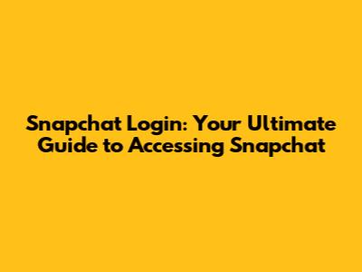 Snapchat Login: Your Ultimate Guide To Accessing Snapchat