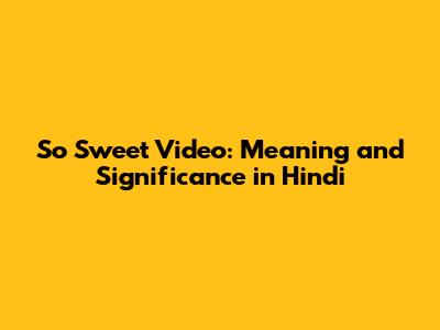 So Sweet Video: Meaning And Significance In Hindi