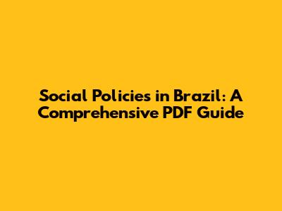 Social Policies In Brazil: A Comprehensive PDF Guide