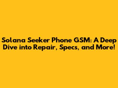 Solana Seeker Phone GSM: Repair, Specs & Everything!