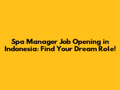 Spa Manager Jobs Indonesia: Find Your Dream Role!