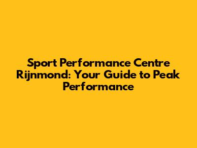 Sport Performance Centre Rijnmond: Your Guide To Peak Performance