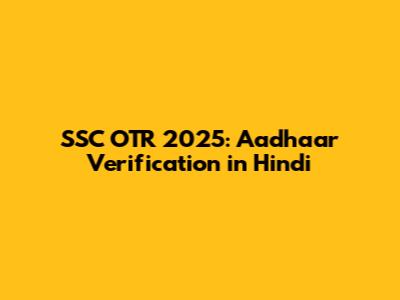 SSC OTR 2025: Aadhaar Verification In Hindi