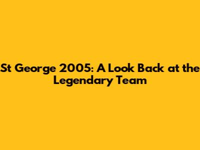 Let's dive into a nostalgic journey, reminiscing about the St George 2005 team. This team wasn't just a group of players; it was a phenomenon, a force to be reckoned with. We're going to explore what made them so special, the key players, their journey, and the lasting impact they had on the sport. Think of this as a time capsule, bringing back the excitement and the memories of that incredible year. This article aims to celebrate the achievements and legacy of a team that etched its name in sporting history.