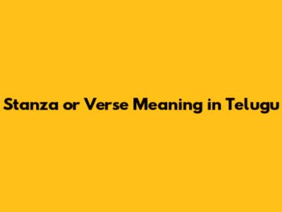 Stanza Or Verse: What's The Telugu Meaning?