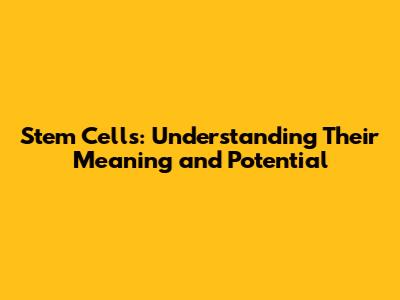 Stem Cells: Understanding Their Meaning And Potential