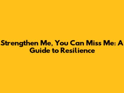 Strengthen Me, You Can Miss Me: A Guide To Resilience