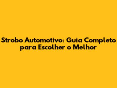 Strobo Automotivo: Guia Completo Para Escolher O Melhor
