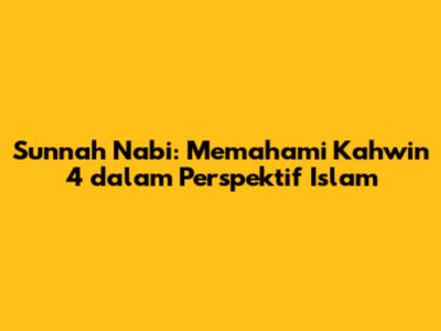 Sunnah Nabi: Memahami Kahwin 4 Dalam Perspektif Islam