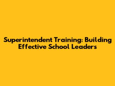 Superintendent Training: Building Effective School Leaders