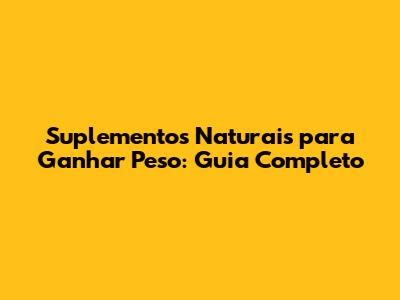 Suplementos Naturais Para Ganhar Peso: Guia Completo