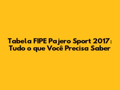 Tabela FIPE Pajero Sport 2017: Guia Completo E Atualizado