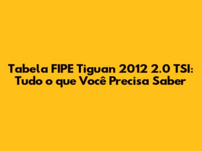 Tabela FIPE Tiguan 2012 2.0 TSI: Guia Completo E Atualizado