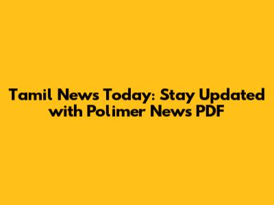 Tamil News Today: Stay Updated With Polimer News PDF