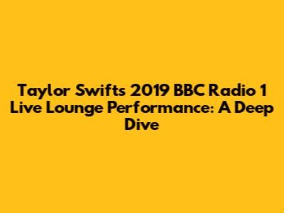 What's up, music lovers! Let's take a trip down memory lane and talk about one of the most talked-about performances of 2019: Taylor Swift's appearance at BBC Radio 1's Live Lounge. This wasn't just any performance, guys; it was a moment where Taylor showcased her incredible versatility and connection with her fans, all within the intimate setting of the Live Lounge. We're going to break down exactly what made this performance so special, from her song choices to her unique arrangements, and why it still resonates with Swifties today. Get ready to dive deep into this iconic set!