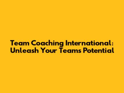Team Coaching International: Boost Your Team's Potential