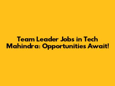 Team Leader Jobs At Tech Mahindra: Opportunities Await!