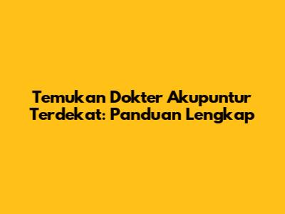 Temukan Dokter Akupuntur Terdekat: Panduan Lengkap