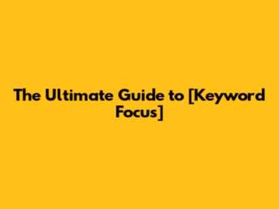 The Ultimate Guide To [Keyword Focus]