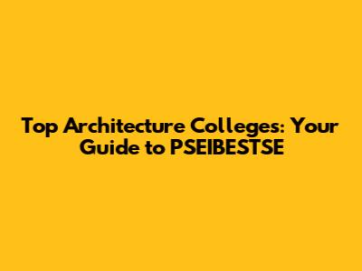 Top Architecture Colleges: Your Guide To PSEIBESTSE