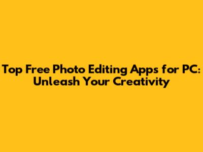 Top Free Photo Editing Apps For PC: Unleash Your Creativity