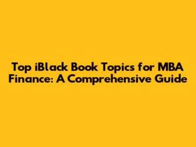 Top IBlack Book Topics For MBA Finance: A Comprehensive Guide