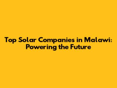 Top Solar Companies In Malawi: Energy Solutions