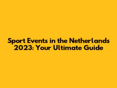 Top Sport Events In The Netherlands 2023: Your Ultimate Guide