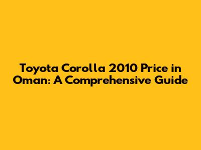 Toyota Corolla 2010 Price In Oman: A Comprehensive Guide