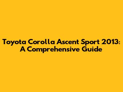 Unveiling the Toyota Corolla Ascent Sport 2013: Overview and Key Features
