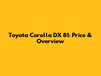 Toyota Corolla DX 81: Price & Overview