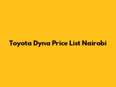 Toyota Dyna Price List Nairobi