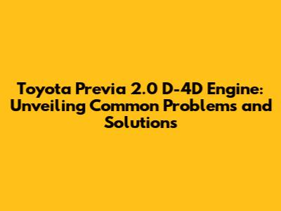 Toyota Previa 2.0 D-4D Engine: Common Issues & Solutions