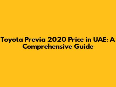Toyota Previa 2020 Price In UAE: A Comprehensive Guide