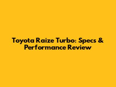 Toyota Raize Turbo: Specs & Performance Review