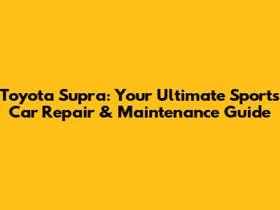 Toyota Supra: Sports Car Repair & Maintenance