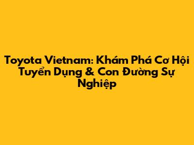 Toyota Vietnam: Tuyển Dụng & Cơ Hội Nghề Nghiệp Hấp Dẫn
