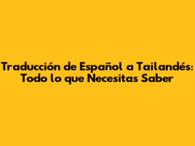 La Importancia de la Traducción del Español al Tailandés