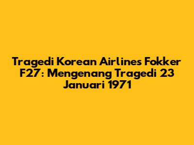 Tragedi Korean Airlines Fokker F27 adalah sebuah peristiwa yang tak terlupakan dalam sejarah penerbangan. Pada tanggal 23 Januari 1971, sebuah pesawat Fokker F27 milik Korean Airlines mengalami kecelakaan tragis yang merenggut banyak nyawa. Artikel ini akan membahas secara mendalam mengenai tragedi ini, mulai dari kronologi kejadian, penyebab kecelakaan, dampak yang ditimbulkan, hingga pelajaran yang dapat kita petik. Mari kita telaah lebih lanjut mengenai peristiwa yang menggugah ini.