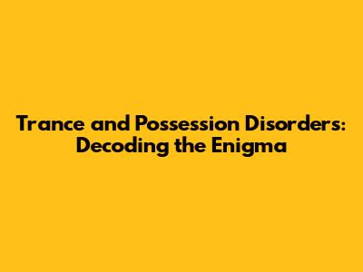 - Myth: Trance and possession disorders are rare. Fact: The prevalence of these conditions may vary across cultures, but they are more common than many people realize.