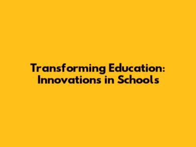 Transforming Education: Innovations In Schools