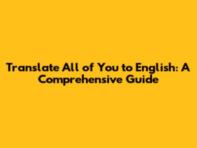 Translate All Of You To English: A Comprehensive Guide